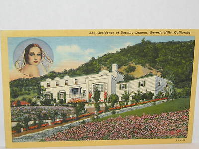 Title (ebay affiliate link): 1948 POSTCARD RESIDENCE OF DOROTHY LAMOUR, ( W/ INSERT PIC ) BEVERLY HILLS CA