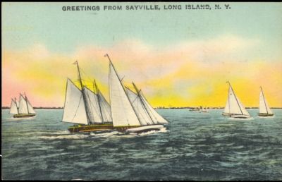 Title (ebay affiliate link): LONG ISLAND, NEW YORK - GREETINGS FROM SAYVILLE "SAIL BOATS" LINEN POSTCARD