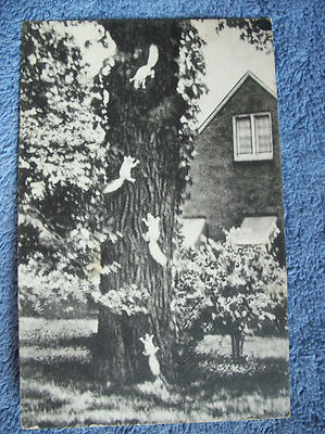 VINTAGE POSTCARD OLNEY IL. WHITE SQUIRRELS ON TREE, PUB. BY BOWERS DRUG STORE