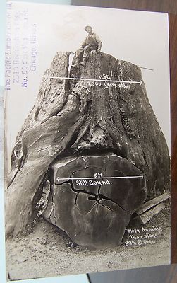 Title (ebay affiliate link): Pacific Lumber CO of Illinois~real photo RPPC~Redwood advertising! Redwood stump