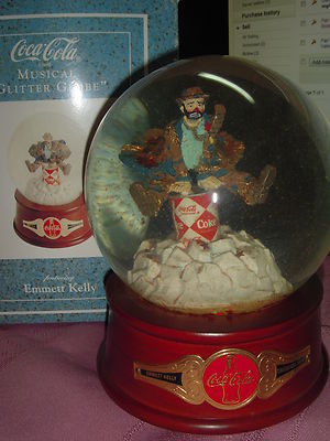 Title (ebay affiliate link): Coca Cola Musical Glitter Globe featuring Emmett Kelly Brand new in the box