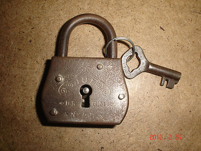 Antique Vintage Old Nice Designed " JUP " Padlock W/Key