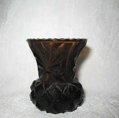 Title (ebay affiliate link): Small Dark Amber Glass Vase "Thistle" or Candle Holder - Collectable