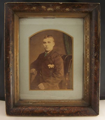Antique WOOD PICTURE FRAME with PHOTOGARPH