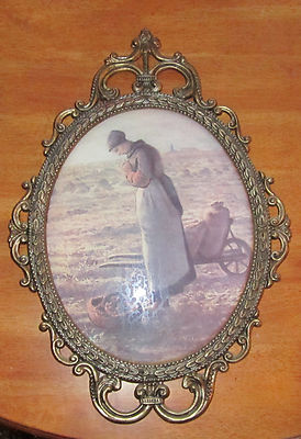 Antique Oval Bubble Glass Concave Picture Frame Woman & Baby