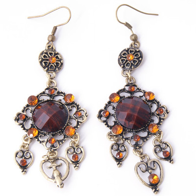 Fashion Vintage&Antique Style Flower Crystal Resin Dangle Earrings Jewelry