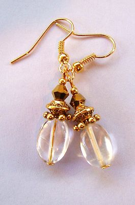 Title (ebay affiliate link): WHITE TOPAZ antique gold bicone CRYSTAL drop earring GP