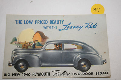 1940 Plymouth 2 door Sedan "Roadking" Postcard lot 37