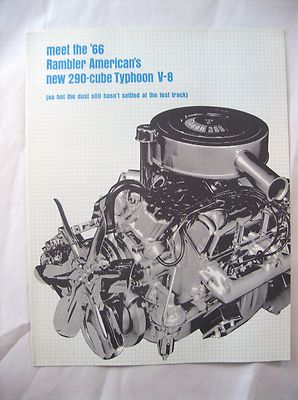 1966 RAMBLER AMERICAN CAR AD BROCHURE 290-CUBE TYPHOON V-8