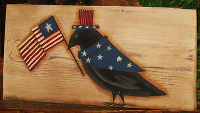 Title (ebay affiliate link): *~*PRIMITIVE*~* HP FOLK ART AMERICANA CROW W/FLAG