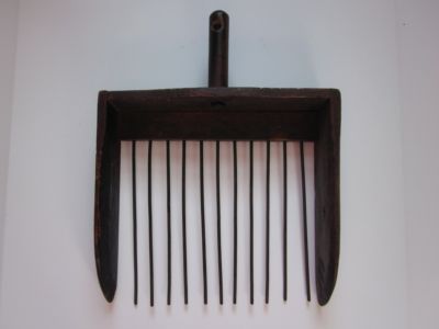Title (ebay affiliate link): ANTIQUE PRIMITIVE BERRY/CHERRY WOOD & IRON PICKER RAKE TOOL