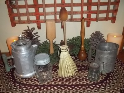 Title (ebay affiliate link): A WONDERFUL COLLECTION OF EARLY VINTAGE TIN AND WOODEN KITCHEN TOOLS