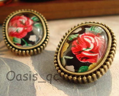 Title (ebay affiliate link): Huge Bronze ANTIQUE STYLE Flower Painting Stud Earring