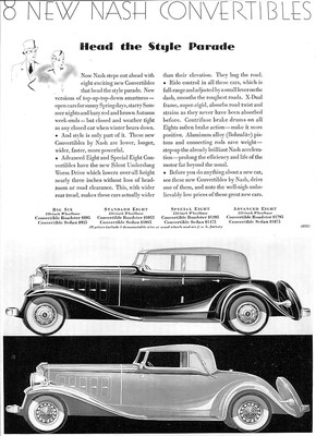 1932 NASH ROADSTER & Sedan CONVERTIBLES Big Glossy CAR AD. 8 New Models