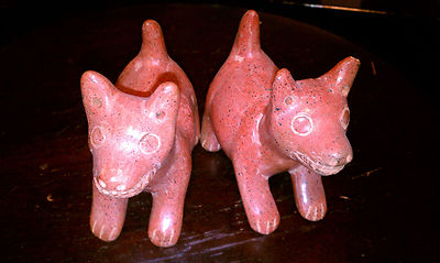 redware dogs primative pueblo southwestern hand made vintage carved