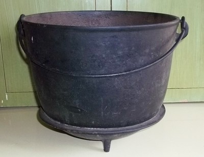 Title (ebay affiliate link): Antique Cast Iron 3 Legged Kettle Bean Pot Cauldron with Heat Ring Marked 8
