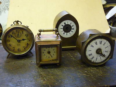 4 ANTIQUE MINATURE ALARM CLOCKS--SPARES - REPAIR