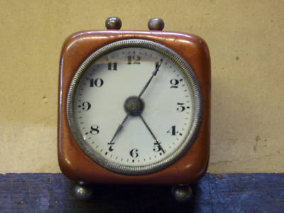 ANTIQUE MINATURE ALARM CLOCK only 2 1/2" square !!! (2)