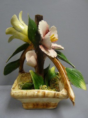 Title (ebay affiliate link): Nuova Capodimonte Planter With Pink and Yellow Flowers
