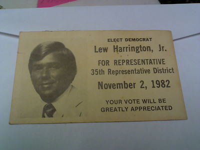 Title (ebay affiliate link): Vintage campaign card for Lew Harrington Jr for representative of 35th district