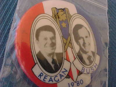 Title (ebay affiliate link): REAGAN BUSH 1980 campaign pinback Republican Politics Perfect condition