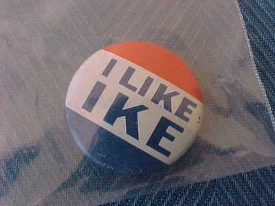 Title (ebay affiliate link): First Term "I LIKE IKE" 1952 Eisenhower campaign pinback Republican President