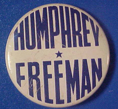 HUMPHREY GOVERNOR ORVILLE FREEMAN PIN Button COATTAIL Pinback MINNESOTA Badge`68