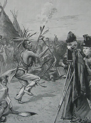 Title (ebay affiliate link): 1889 BLACKFEET INDIAN WAR-DANCE - Pocklington Reserve, Alberta-Antique Engraving