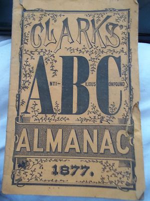 Title (ebay affiliate link): Antique 1877 Clarks ABC Almanac Anti Bilious Compound w/Original One Cent Stamp