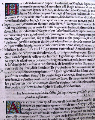 1552 orig HOLBEIN BIBLE LEAF with 3 fine ILLUMINATED INITIALS