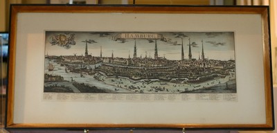 Title (ebay affiliate link): Antique 1790s Probst Handcolored Engraving - Panoramic View of Hamburg, Germany