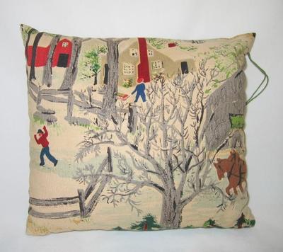 Title (ebay affiliate link): Antique looking pillow with winter scene - apx 8"X8" - bead (or bean) filled