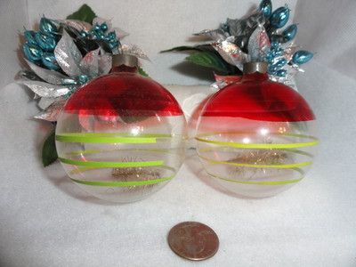 Title (ebay affiliate link): Vintage Glass ornaments 2 unsilvered 40s Red & lime tinsel scrap Christmas war