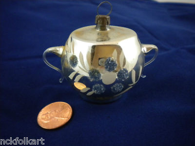 Title (ebay affiliate link): ANTIQUE VINTAGE SUGAR BOWL MERCURY GLASS ORNAMENT PERIWINKLE CRUSHED GLASS FLOWE