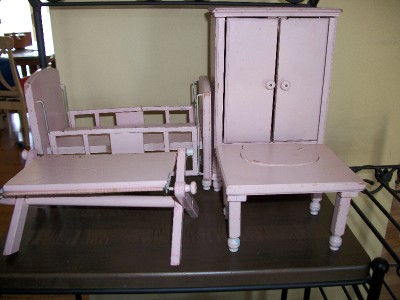 Title (ebay affiliate link): Vintage Antique DOLL Furniture Pink Shabby Crib+ 4 pc