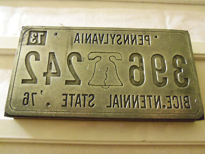 Title (ebay affiliate link): antique printer's cut/block Letterpress BICENTENNIAL LICENSE PLATE PA '73