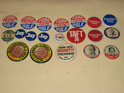 presidential pins ford,ike,truman,taft & united steel workers pins