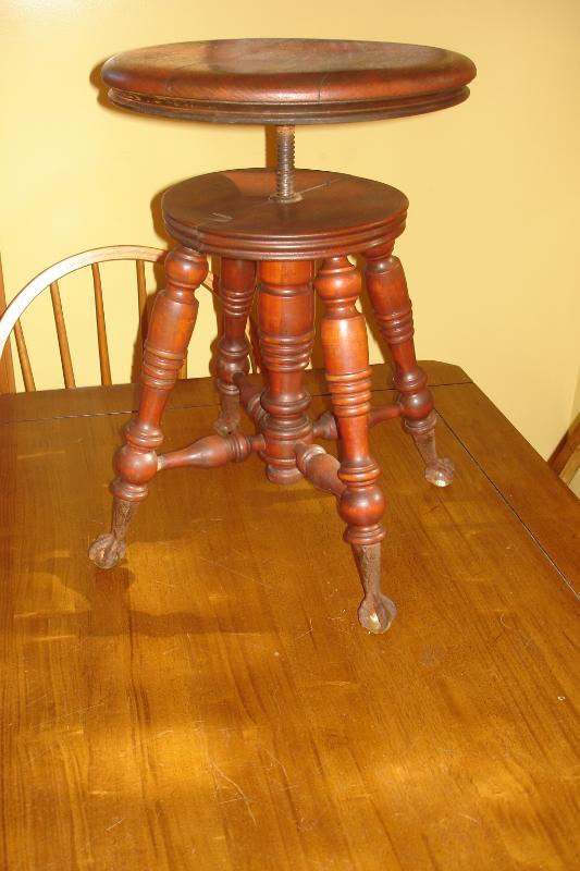 Title (ebay affiliate link): Antique Wood Piano Stool Ball & Claw Glass Feet TONK