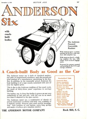 Title (ebay affiliate link): 1920 ANDERSON Six Patented CONVERTIBLE ROADSTER Two-Color CAR AD. Rock Hill SC