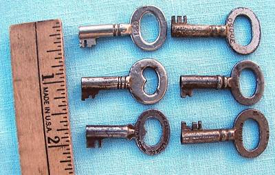5 Old Steamer Trunk Keys all different