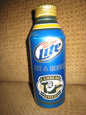 Title (ebay affiliate link): Empty Miller Lite Aluminum Beer Bottle; Lambeau Field on Front;Green Bay Packers