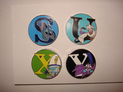 Title (ebay affiliate link): Disney Pin Trading S, U, X, Y Alphabet Letter Stitch Hidden Mickey Series 4 Pins