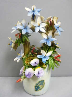 Title (ebay affiliate link): Nuova Capodimonte Planter With Blue Purple and Red Flowers