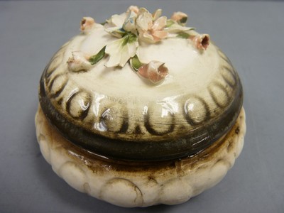 Title (ebay affiliate link): Nuova Capodimonte Blue Orange and Pink Floral Large Round Trinket Box