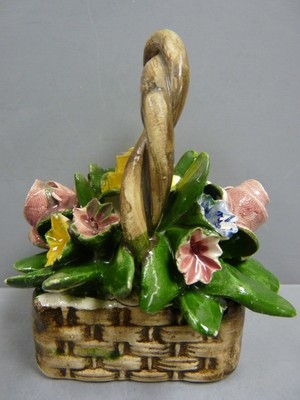 Nuova Capodimonte Pink Yellow and Blue Flower Basket