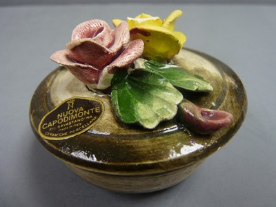 Title (ebay affiliate link): Nuova Capodimonte Small Round Trinket Box With Yellow and Pink Rose