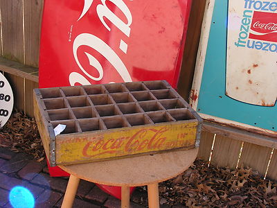 Title (ebay affiliate link): Coca Cola Wooden Bottle Carrier Drink Coca Cola holds 24 bottles1960s Yellow box
