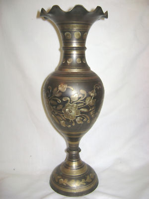 LARGE ETCHED BRASS VASE " INDIA" 3 PIECE