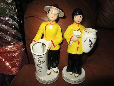 Moriyama Occupied Japan Japanese Pair Porcelain Man Woman Dragon Figurine
