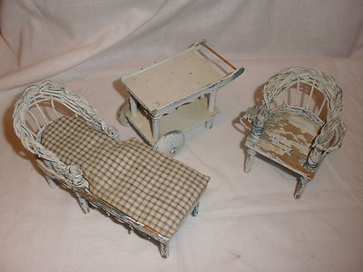 Title (ebay affiliate link): 3 Pieces Vintage Antique Miniature Wicker Furniture Shabby Chippy John Wanamaker
